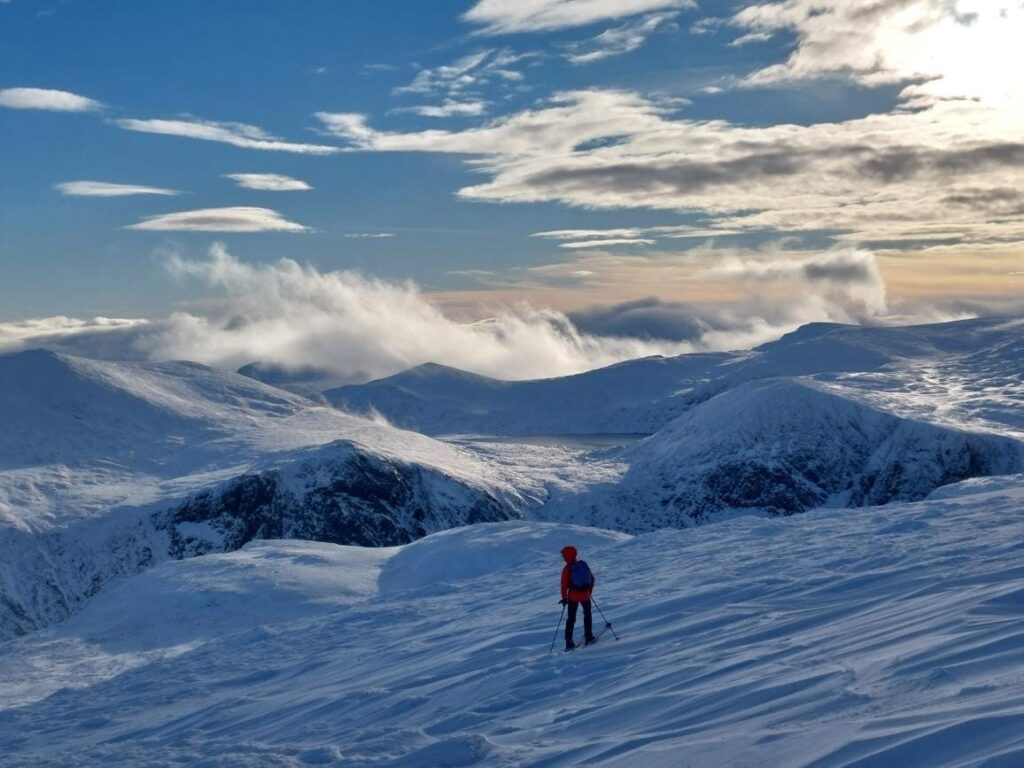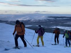 The more experienced group were able to enjoy some superlative early season conditions off the back of Cairngorm with powder laps of the south slopes. Our newer members were with our trip contact Al Todd and had a great skin up to the summit and a quick descent with freshies into upper Coire Raibert. It was all very social with lots of other club members out doing their own things.