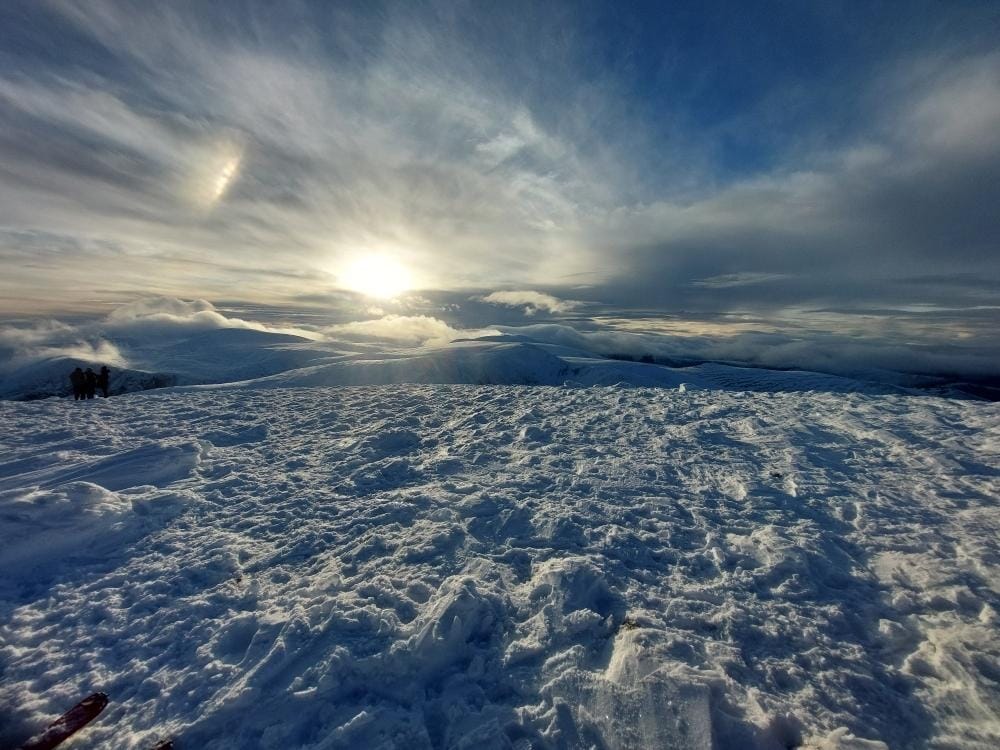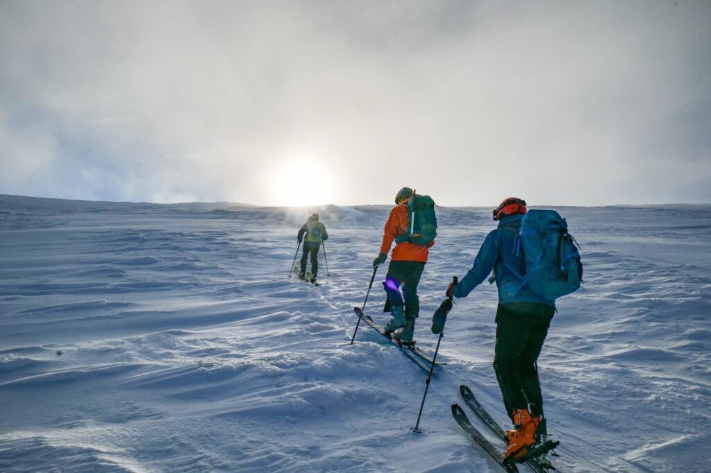 And we’re off! The IBSC Winter season opened in brilliant style on Saturday with our first day trip of the season. This saw two parties of 6 members making their way up the newly signed touring access route (Day Lodge Poma & then M2), avoiding the downhill traffic on the zig-zags & traverse.