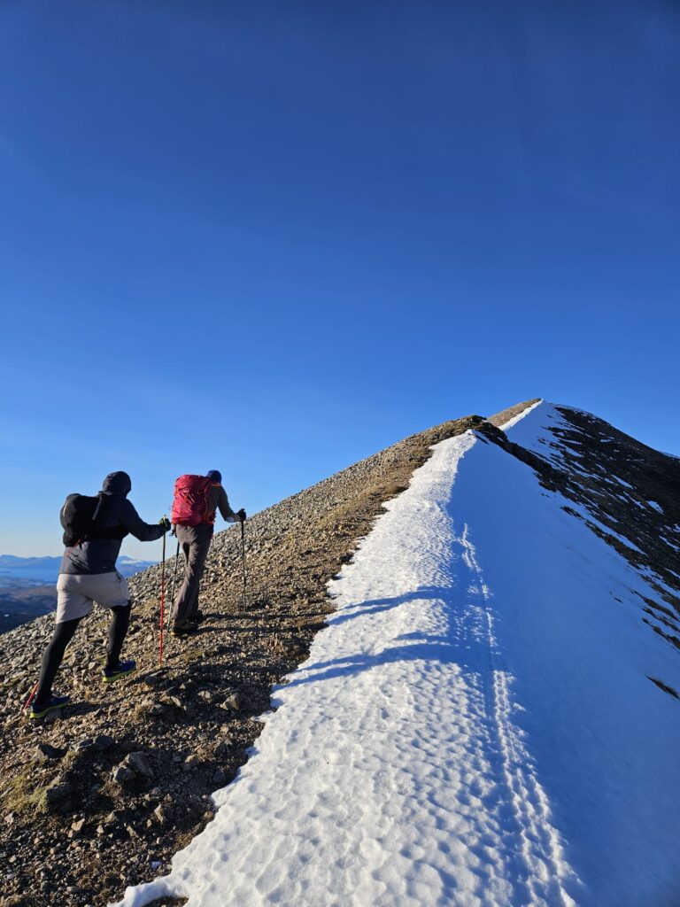 We packed early to make the most of the short daylight hours and were on the route by 9 a.m. Conditions were excellent: dry rock, frozen marshland, and clear blue skies with outstanding visibility. It could scarcely have been better.
